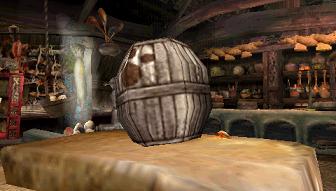 樽から少しだけ見える目が不気味ですが